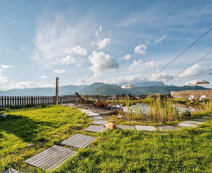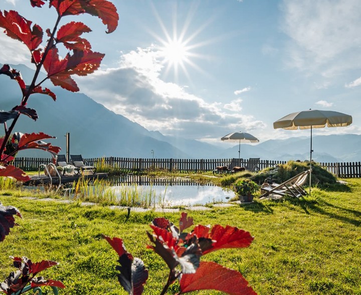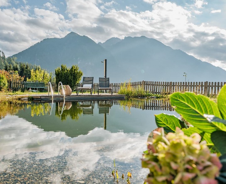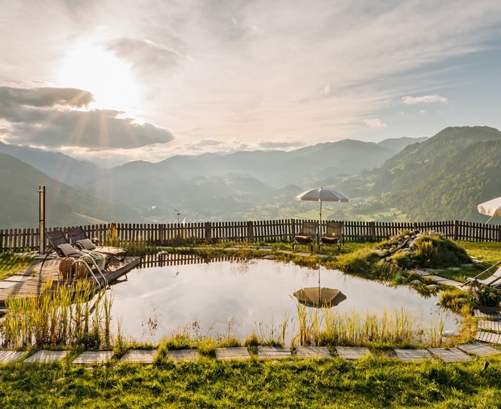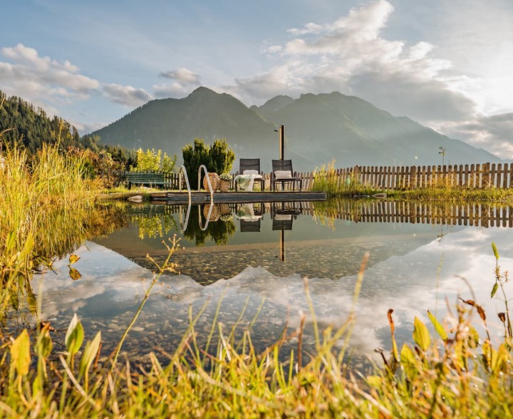 Über allem und weg von allem. Alpine Slowness spüren. Im eigenen Naturbadeteich mit Panorama-Liegewiese. Umgeben von mächtigen Gipfeln, sattgrünen Almwiesen, dem Blick auf das beeindruckende Salzachtal. Entschleunigung zulassen und zur Ruhe zu kommen. Abkühlen. Untertauchen. Loslassen.