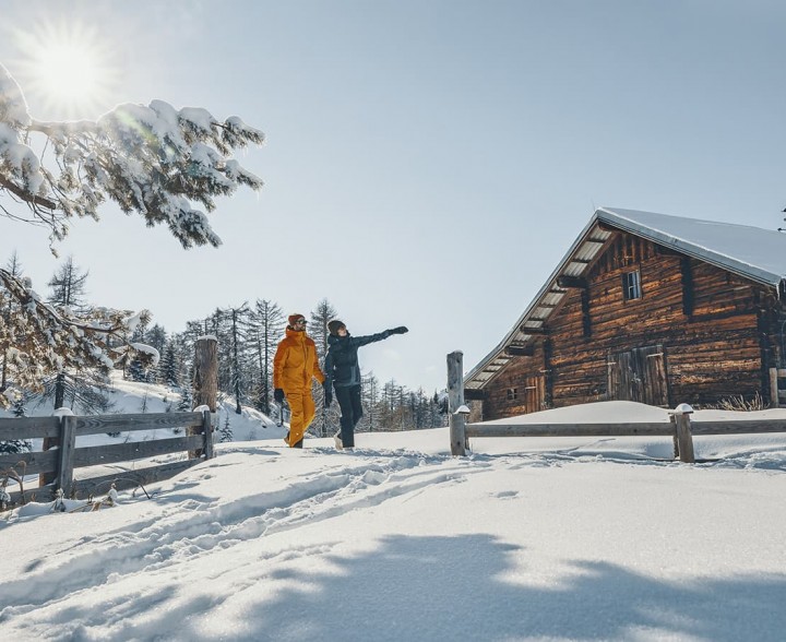 Bei ausgedehnten Winterwanderungen. Die frische Winterluft in der Nase und den knirschenden Schnee unter den Füßen. Oder lieber ein kleines Abenteuer wagen und Schneeschuhe anschnallen. Unberührtes Weiß erkunden, weitab präparierter Wanderwege und Loipen. Einfach der Nase nach!