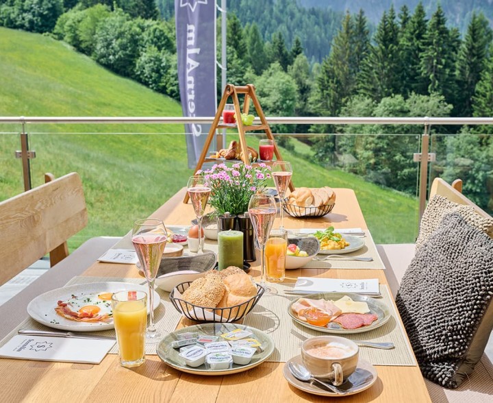 Kraft tanken beim Hotelfrühstück. Mittags wird im à la carte Restaurant SternAlm frisch aufgetischt. Und abends drei Gänge mit zwei Hauptgängen nach Wahl, zubereitet mit viel Liebe.